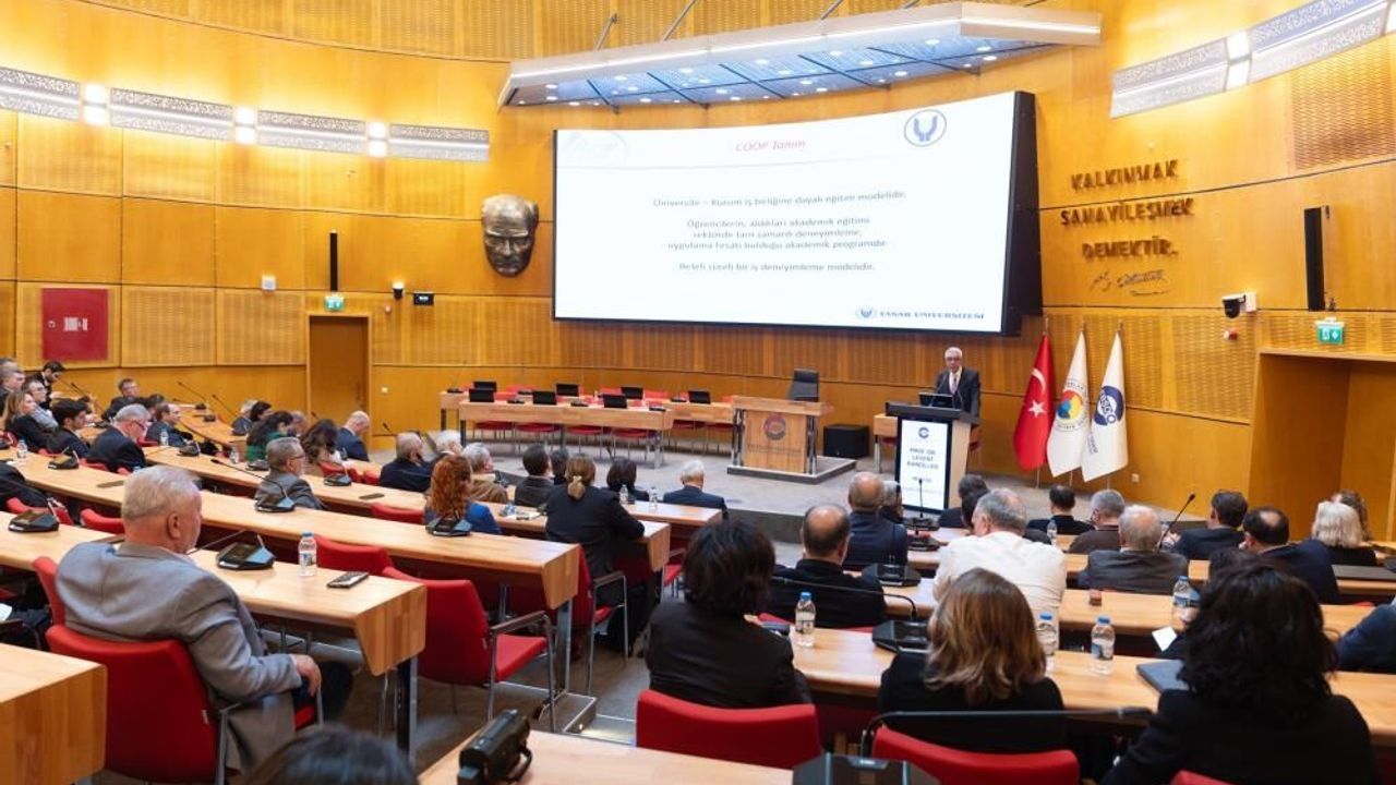 Yaşar Üniversitesi Rektörü Prof. Dr. Levent Kandiller, öğrencilerin mezuniyet öncesinde iş dünyasıyla daha erken temas kurmasını amaçlayan YU-COOP (Yaşar Üniversitesi Ortak Eğitim Programı) modelini Egeli sanayicilere tanıttı.
