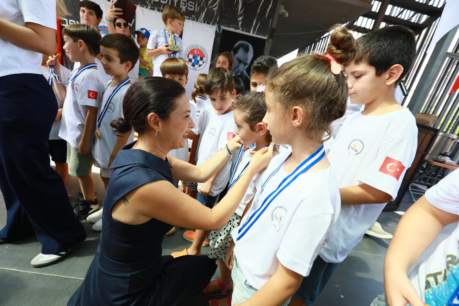 Satranç turnuvasına katılan tüm çocukları gösterdikleri cesaretten dolayı tebrik eden Filiz Başkan; “Birazdan burada birinci, ikinci ve üçüncü belirlenecek. Ama çok yürekten bir şey söylemek istiyorum. O minik yüreklerin cesareti çok kıymetli. O yüzden birincinin, ikincinin, üçüncünün kim olduğu elbette büyük bir gururdur ama bunu bir kenara koyarak “ben bu turnuvaya katılmak ve satranç oynamak istiyorum” deyip kaydını yaptıran, mücadele gösteren, kaleyi, piyonu bir kez bile hareket ettiren tüm çocuklarımıza gösterdikleri cesaretten dolayı helal olsun diyorum. Hepiniz birincisiniz bunu bilin istiyorum" dedi.