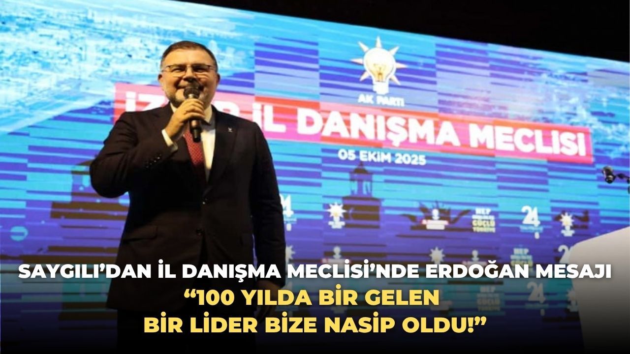 Son Mühür / Yiğit Uzun- AK Parti İzmir İl Danışma Meclisi, Balçova Termal Otel’de yoğun katılımla gerçekleştirildi. Toplantıda konuşan AK Parti İzmir İl Başkanı Bilal Saygılı, partililere birlik ve dayanışma çağrısında bulundu. Cumhurbaşkanı Recep Tayyip Erdoğan’ı “100 yılda bir gelen lider” olarak tanımlayan Saygılı, “Sayın Cumhurbaşkanımızın arkasında durmamız gerekiyor. 100 yılda gelen bir lider bize nasip oldu.” dedi.