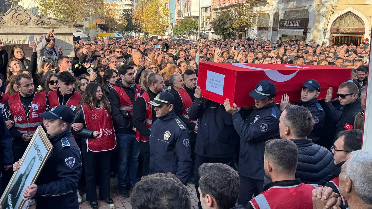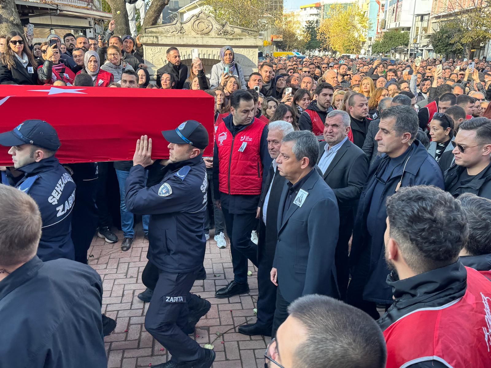 Durbay’ın cenazesi, üzerinde Türk bayraklarının olduğu cenaze aracıyla belediye binasının önüne getirilerek tören düzenlendi.