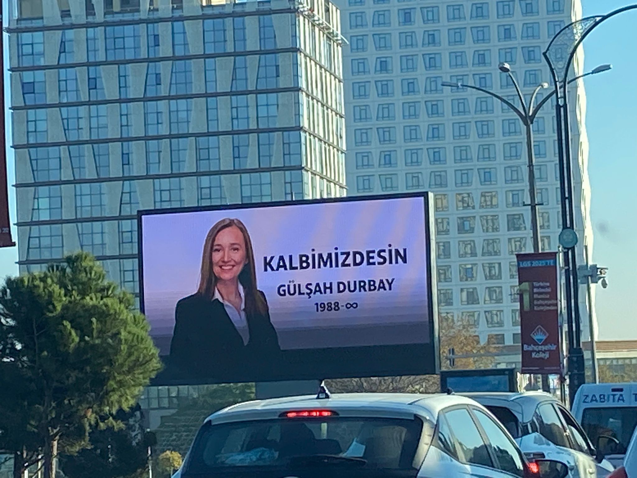 Durbay'ın ölüm haberi sonrası kentteki meydanlara 'kalbimizdesin' yazılı Gülşah Durbay'ın fotoğrafının bulunduğu afiş asıldı.