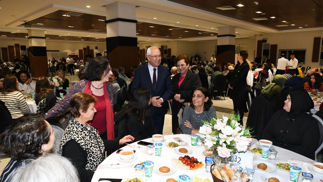Karabağlar Belediye Başkanı Muhittin Selvitopu ve eşi Fügen Selvitopu, semt merkezlerinin kursiyer kadınlarıyla geleneksel iftar yemeğinde buluşmaya devam etti. Kibar Belediye Hizmet Kompleksi'nin çok amaçlı salonunda gerçekleştirilen iftara, yüzlerce kursiyer kadın, eğitmenler, meclis üyeleri ve sivil toplum kuruluşu temsilcileri katıldı.