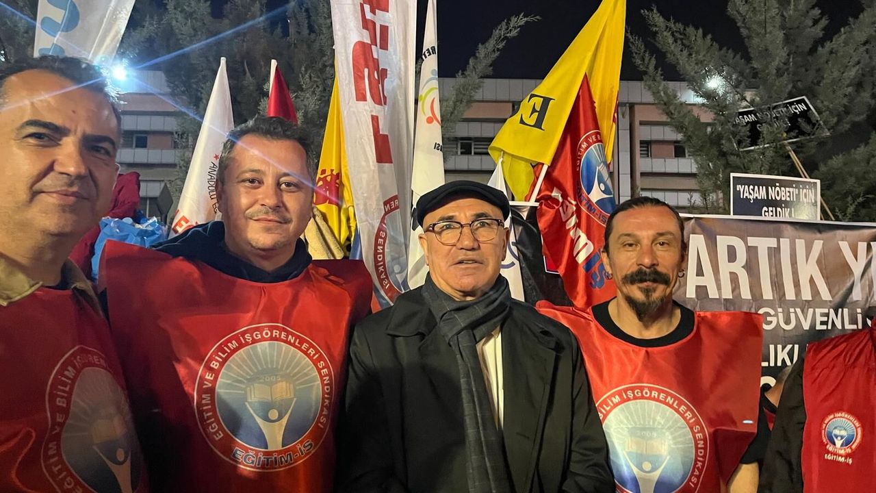 Gündüz İl Milli Eğitim Müdürlükleri önünde açıklama yapan sendika yönetici ve üyeleri, akşam da Ankara’nın yolunu tuttu. Milli Eğitim Bakanlığı önünde nöbete başlayan öğretmenler, 16 Nisan’da geniş katılımlı bir protesto eylemine hazırlanıyor. Gündüz İzmir Milli Eğitim Müdürlüğü önünde basın açıklaması yapan Eğitim-İş İzmir Şube yöneticileri ve üyeleri aynı gün Ankara’ya uçtu. Bakanlık önünde nöbet tuttuklarını anlatan sendika temsilcileri, “Yarın tüm illerden eyleme katılan sendikaların temsilcileri ve üyeleri Ankara’da buluşacak” dedi. CHP’li Milletvekili Mahmut Tanal da öğretmenlerin eylemine destek verdi. Tanal, alana gelerek öğretmenlerden eylem hakkında bilgi aldı.