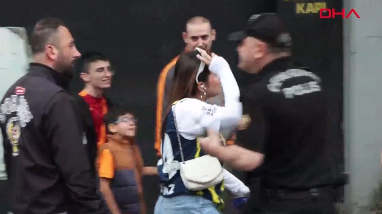 Bir şahıs ise Fenerbahçeli kadına şişe fırlattı. Fenerbahçe taraftarı, Çevik Kuvvet Polisi'nin eşliğinde kalabalıktan uzaklaştırıldı.