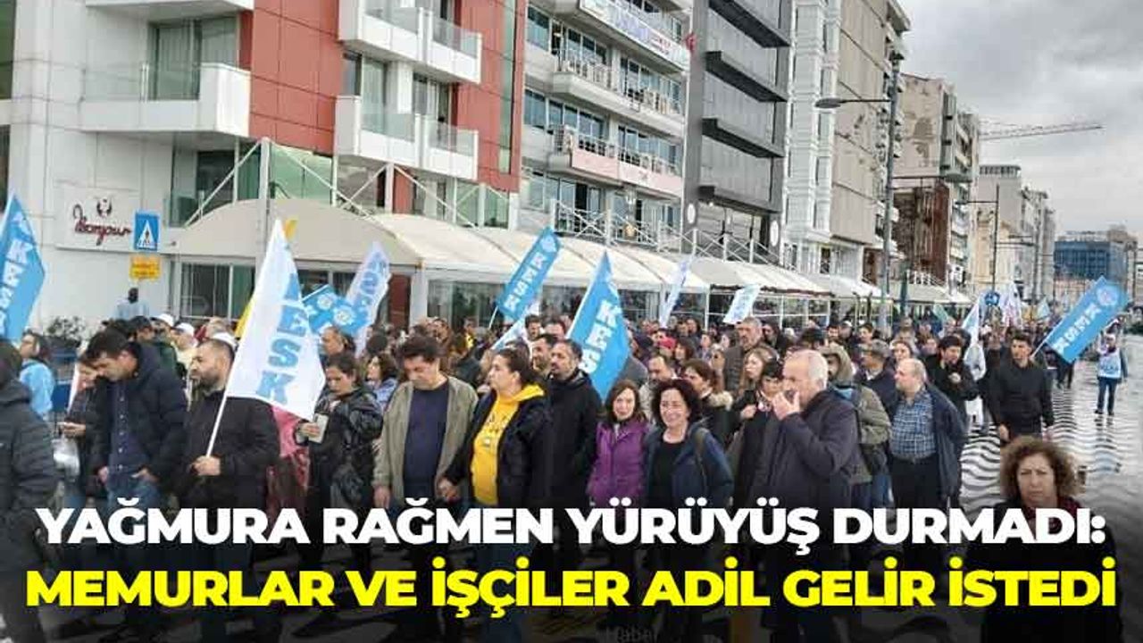 Soğuk havaya ve yağmura rağmen halaylar ve sloganlara Konak’tan, Cumhuriyet Meydanı’na yürüyüşlerini gerçekleştiren sayıları 10 bin gibi yüksek bir rakamı bulan sendika üyesi memurlar ve işçiler, emekten halktan yana bir bütçe istediklerini, insanca yaşam güvenceli iş ile adil bölüşüm istediklerini vurgulayarak, eylemlerinin ve mitinglerinin önümüzdeki günlerde de devam edeceğinin altını çizdi.