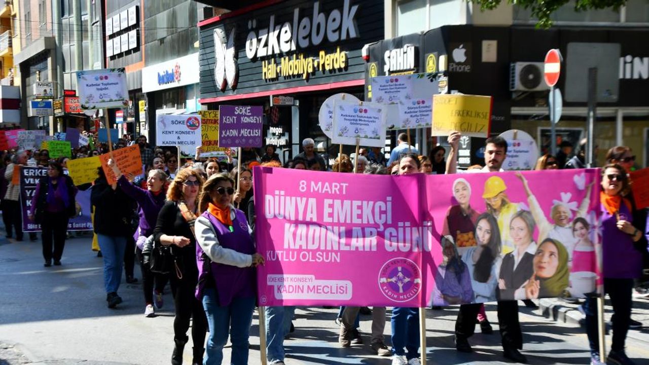Son Mühür/Merve Turan- Söke Kent Konseyi Kadın Meclisi'nin öncülüğünde, Söke Belediyesi'nin desteğiyle gerçekleştirilen 8 Mart Dünya Emekçi Kadınlar Günü etkinlikleri, katılımcıların coşkulu yürüyüşü ve anlamlı basın açıklamalarıyla büyük bir anlam kazandı.