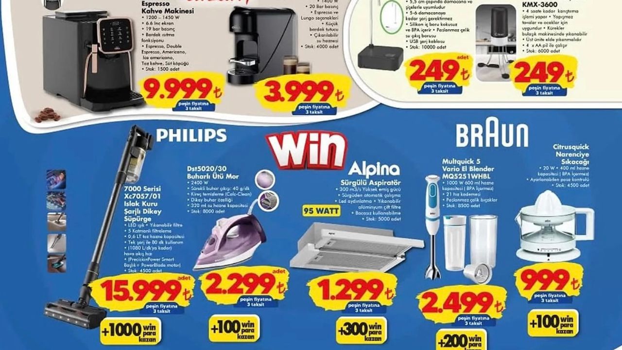 Kataloğun yıldızı olan Philips 7000 Serisi Islak Kuru Şarjlı Dikey Süpürge, 15.999 TL satış fiyatıyla teknoloji reyonunda yerini aldı. Temizlik grubunu tamamlayan bir diğer ürün ise 2.299 TL fiyat etiketiyle satışa sunulan Philips Buharlı Ütü oldu. Mutfaklarda pratiklik arayanlar için Braun Multiquick 5 Vario El Blender Seti 2.499 TL, kahve keyfini evine taşımak isteyenler içinse Arzum OKKA Intenso Kapsül Kahve Makinesi 3.999 TL fiyatla alıcı bekliyor.