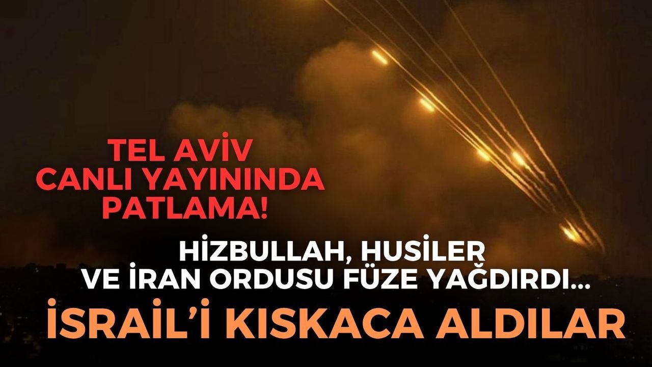 "İsrail'de bir kez daha başkent Tel Aviv'de siren sesleri yükseldi. Yaklaşık 9 saatlik aranın sonrasında yükselen o siren seslerini ekranlarınıza getirdik. Biz de tam, bakın patlamalar şu anda başlamış durumda. Hava savunma sistemleri devreye giriyor bir yandan. Düşüyor... Çok büyük bir patlama oldu. Yani öyle tahmin ediyorum ki bir parça çok yakın bir noktaya düştü."