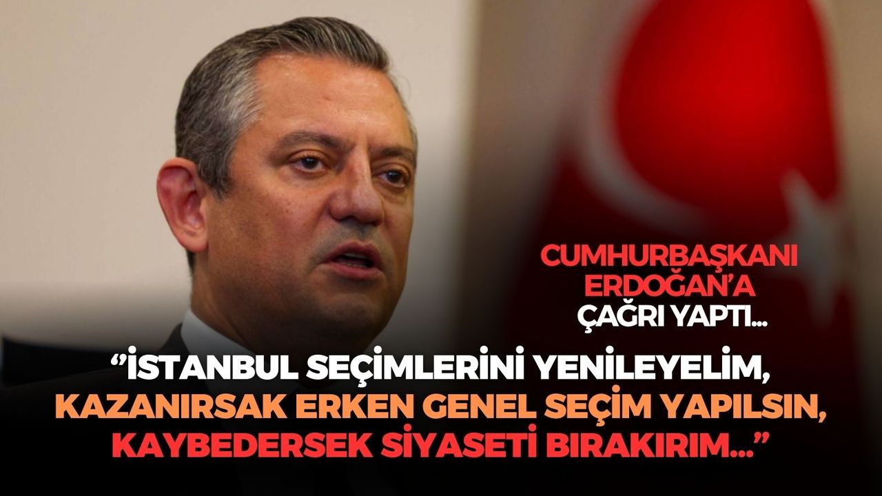 Son Mühür - Cumhuriyet Halk Partisi (CHP) Genel Başkanı Özgür Özel, Cumhurbaşkanı Recep Tayyip Erdoğan’a yönelik erken seçim çağrısını bir kez daha dile getirdi. İstanbul seçimleri üzerinden dikkat çeken bir teklif sunan Özel, seçimlerin yenilenmesi durumunda sonucu kendi siyasi geleceğiyle bağdaştıracağını söyledi. Özel, “Eğer kaybedersek siyaseti bırakırım; ancak kazanırsak Türkiye erken seçime gitmeli” diyerek çağrısını yineledi.