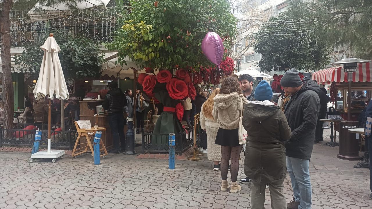 Son Mühür- Berivan Kaya/ 14 Şubat Sevgililer gününde İzmir Alsancak'ta bulunan Alaköy Pastanesi çiftlerin gözdesi oldu.