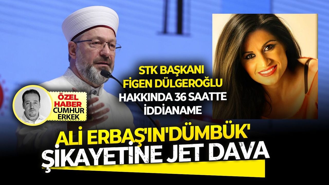 SON MÜHÜR/Cumhur Erkek-Eski Diyanet İşleri Başkanı Ali Erbaş’ın, sosyal medya üzerinden kendisine, 'Dümbük' dediği iddiasıya, İzmirli STK Başkanı Figen Dülgeroğlu hakkında yaptığı şikayet jet hızıyla davaya dönüştü. Hakkında 3 gün içinde dava açılan Dülgeroğlu, hakaret suçundan Asliye Ceza Mahkemesi'nde yargılanacak.