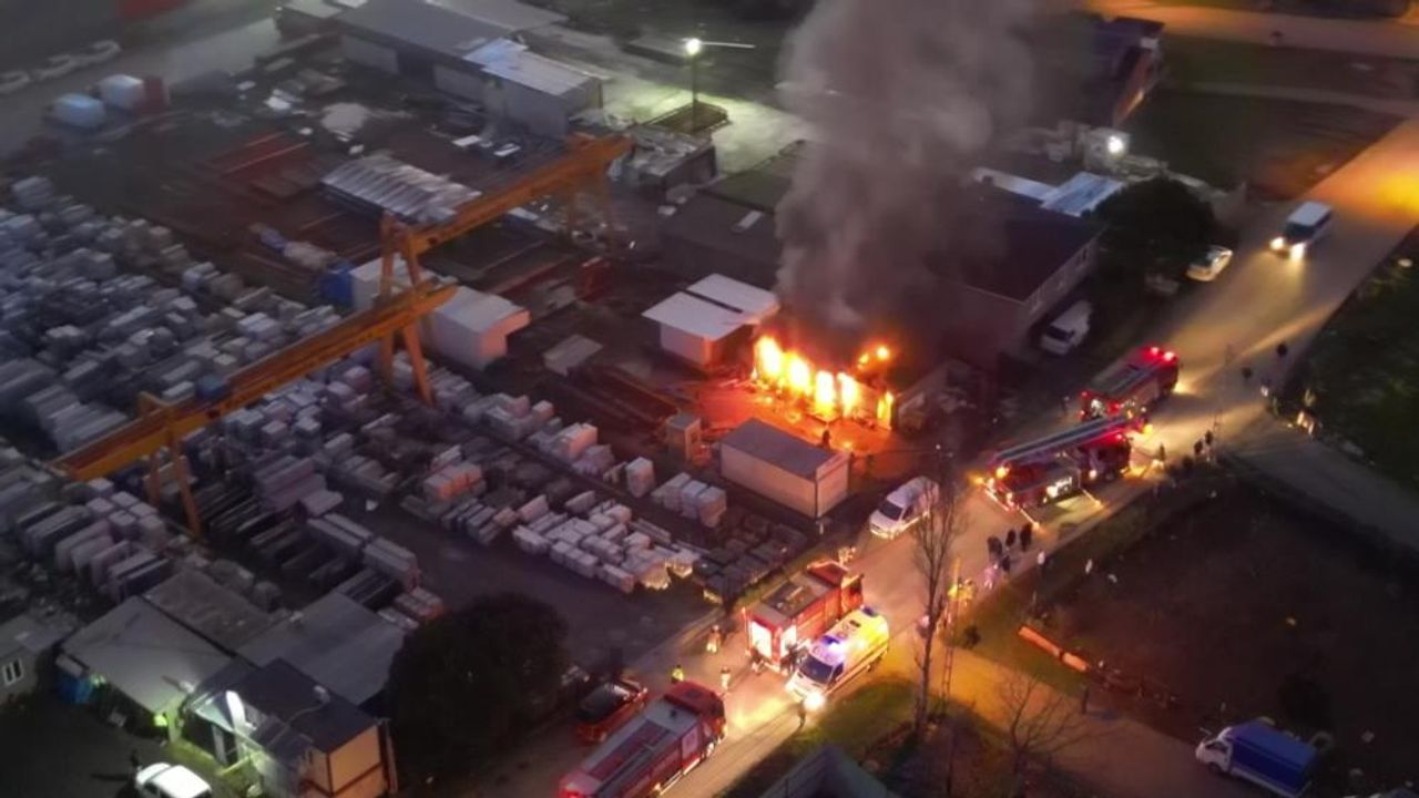 3 işçinin hayatını kaybettiği yangın dron ile havadan görüntülendi.