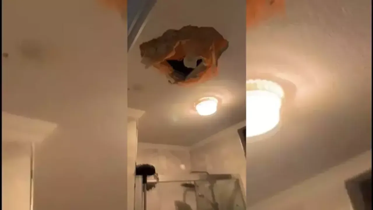 Asma tavandan banyoya inmiş