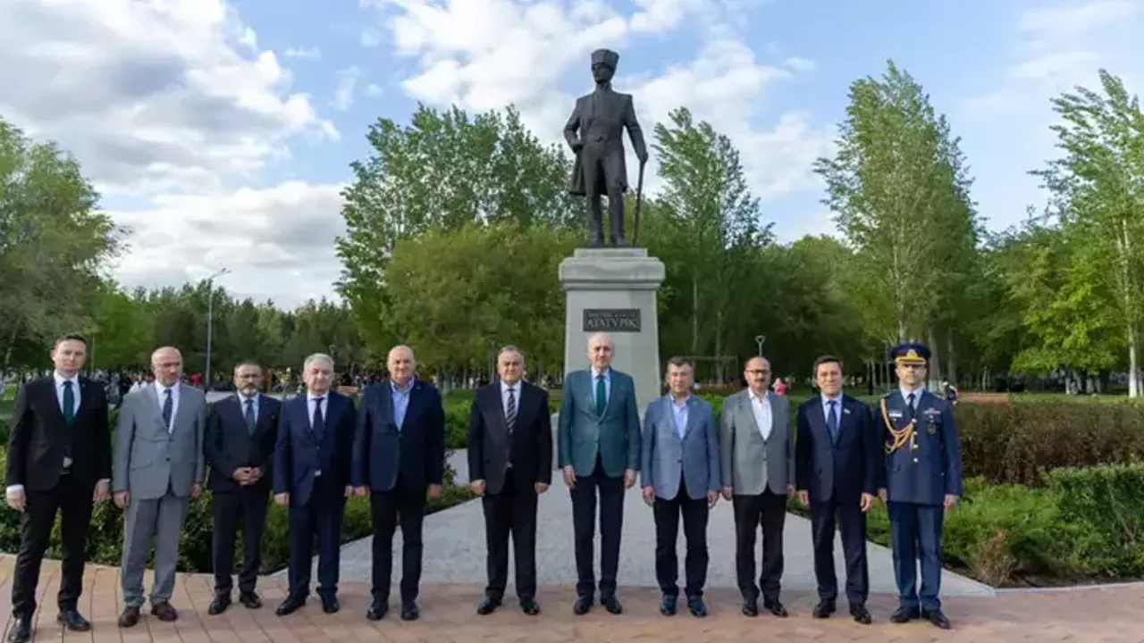 Astana’daki Atatürk Anıtı’nKurtulmuş, beraberindeki MHP Grup Başkanvekili ve Manisa Milletvekili Erkan Akçay, TBMM İdare Amiri ve CHP Artvin Milletvekili Uğur Bayraktutan, Türkiye-Kazakistan Parlamentolar Arası Dostluk Grubu Başkanı ve AK Parti Şanlıurfa Milletvekili Mehmet Ali Cevheri, AK Parti Bursa Milletvekili Osman Mesten ve Türkiye’nin Astana Büyükelçisi Mustafa Kapucu ile Gazi Mustafa Kemal Atatürk’ün adını taşıyan parka geldi.