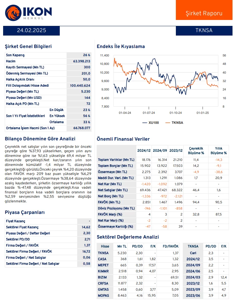 Şirketin çeyreklik net satışları bir önceki çeyreğe göre %37,93 artış göstererek 69,4 milyar TL seviyesine ulaştı. Ancak, geçen yılın aynı dönemine göre bu artış %1,63’te sınırlı kaldı. Net zarar, yılın son çeyreğinde kümülatif olarak 1,4 milyar TL seviyesinde gerçekleşirken, özsermaye yıllık bazda %38,64 oranında düştü.