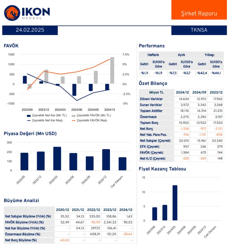 Buna karşılık, FAVÖK marjının %6,29 seviyesine yükselmesi, şirketin kârlılık marjlarında iyileşme olduğunu gösteriyor. Özellikle, önceki çeyreğe göre 209 baz puanlık artış, operasyonel verimlilik açısından olumlu bir gelişme olarak değerlendiriliyor.