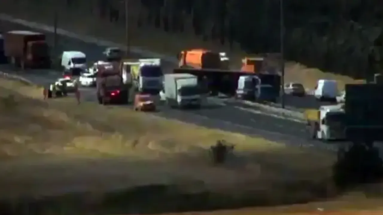 TEM Otoyolu’nun Çatalca mevkiinde, Edirne istikametine seyir halindeki TIR, henüz belirlenemeyen bir nedenden dolayı devrildi. Olay yerine gelen ilk ekipler, devrilen TIR'ın yola verdiği zarar ve kazanın büyüklüğüne göre müdahalelerini hızla gerçekleştirdi. İtfaiye ekipleri, araçta herhangi bir yangın tehlikesine karşı önlem alırken, sağlık ekipleri de kazadan etkilenen sürücü ve yolculara müdahale etti.