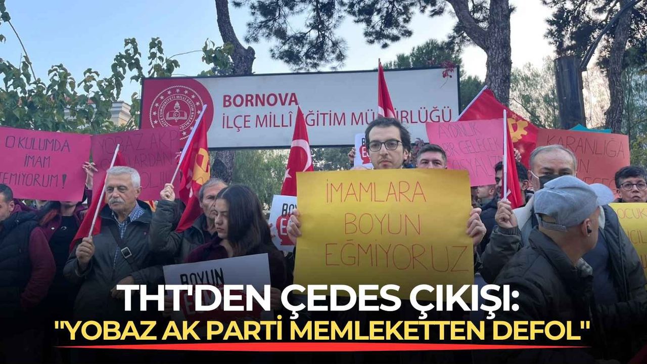 GAMZE ESKİKÖY- Bornova İlçe Milli Eğitim Müdürlüğü, ilçede bulunan 98 okula ÇEDES projesi kapsamında imam ve din görevlisi atadı. Geçtiğimiz yıllarda da proje kapsamında görevlendirmeler yapılmış, ancak gelen tepkiler üzerine geri adım atılmıştı. Türkiye Halk Temsiclileri (THT) bunun üzerine Bornova İlçe Milli Eğitim Müdürlüğü’nün önünde basın açıklaması düzenledi. Düzenlenen basın açıklaması önünde halk temsilcileri “Yobaz Ak Parti memleketten defol. İmam hatipler kapatılacak. İmamlara boyun eğmiyoruz. İmar değil bilimsel eğitim istiyoruz aydınlık eğitim kuracağız. Okullarda imam istemiyoruz” diye slogan atıldı. Ardından Suphi Koyuncuoğlu Ortaokulu’nda okuyan bir öğrencinin velisi Murat Mert basın açıklaması okudu.