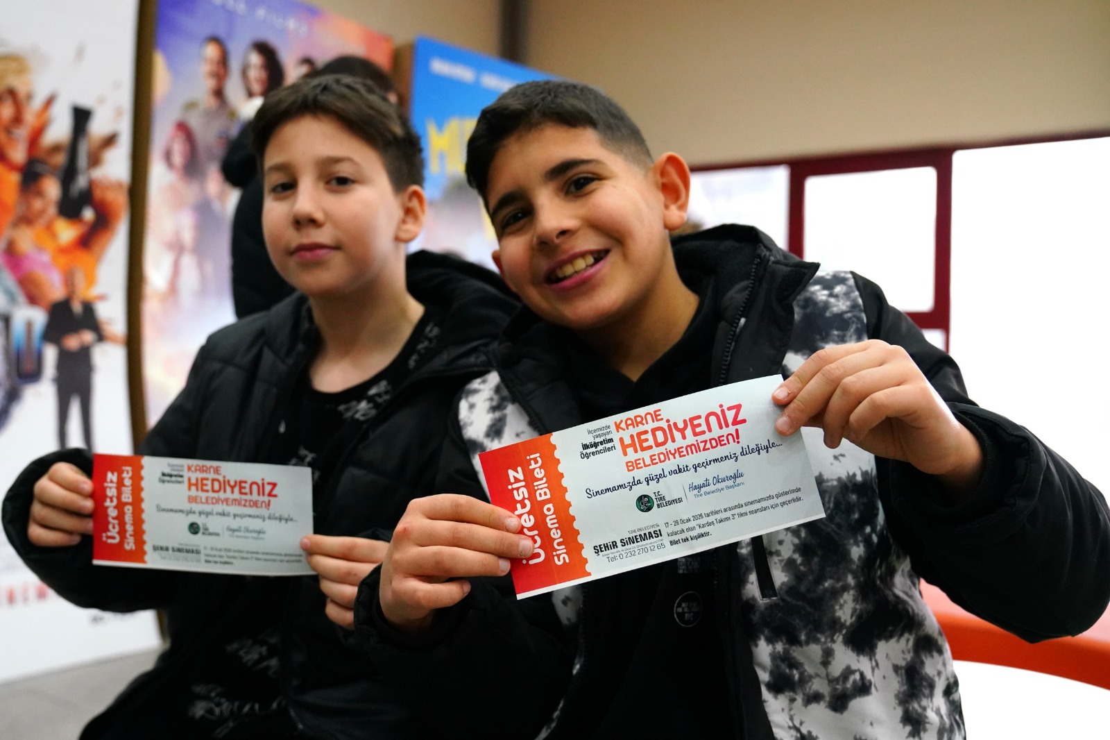 Tire Belediyesi Kültürel Miras Koruma Müdürlüğü, öğrencilere karne hediyesi olarak ücretsiz sinema bileti verdi, müze turu yaptırdı.