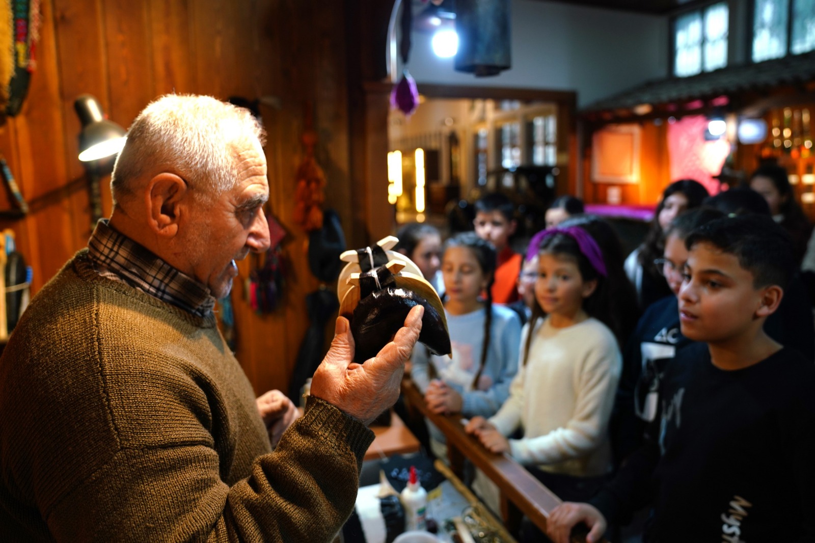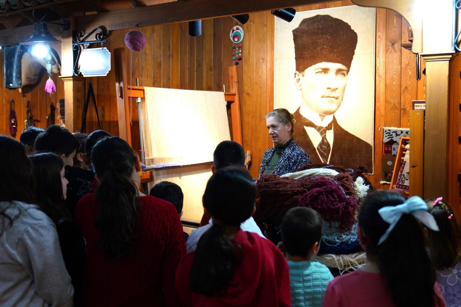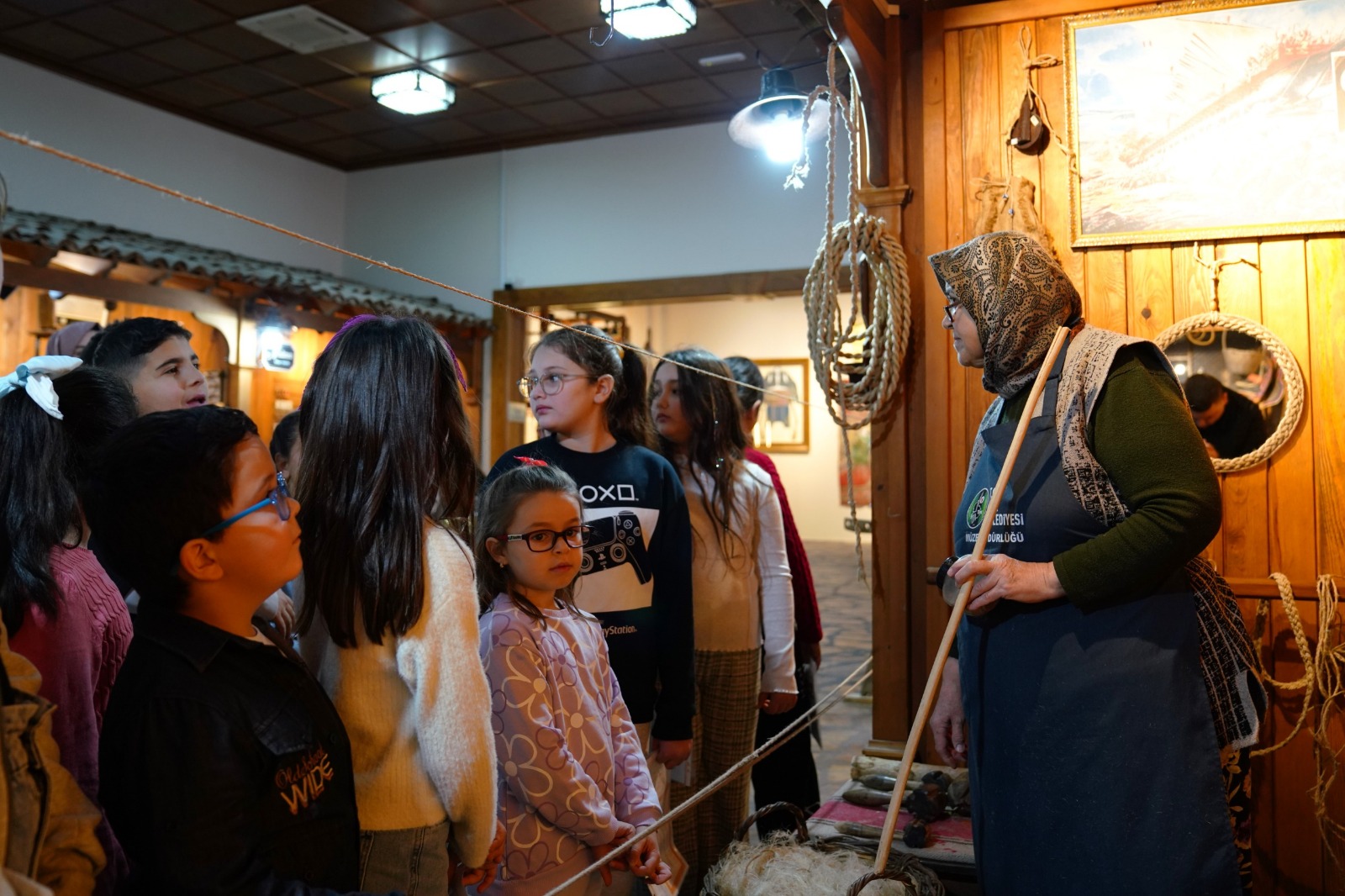 Tire Belediyesi Kent Müzesi’ndeki eserleri, uzmanların anlatımı eşliğinde inceleyen öğrenciler, müzedeki el sanatlarını da bizzat ustalarından dinlediler.