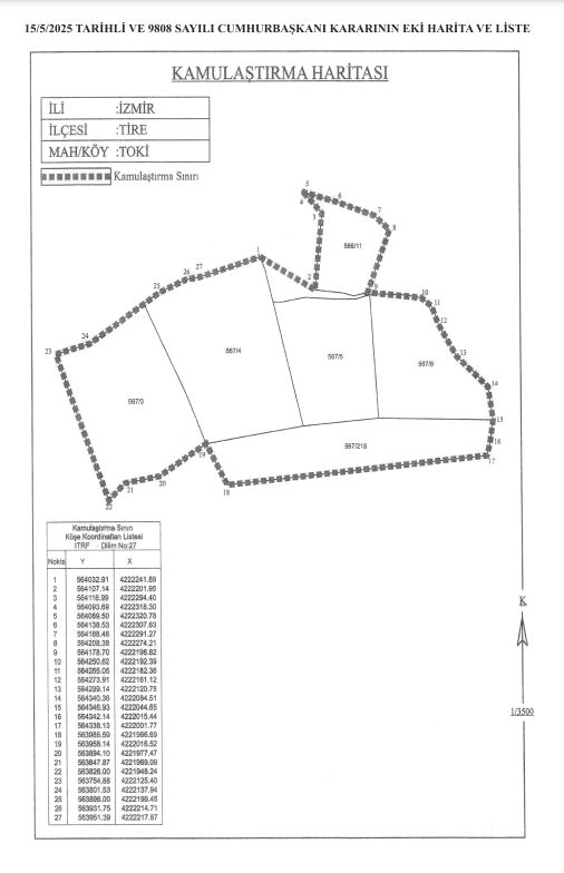 Kamulaştırma sürecine ilişkin Cumhurbaşkanlığı kararları, Resmi Gazete’de yayımlanarak resmiyet kazandı. Bu karar doğrultusunda TOKİ, projelerin uygulanacağı alanlarda bulunan taşınmazları acele kamulaştırma yöntemiyle edinme yetkisine sahip oldu.