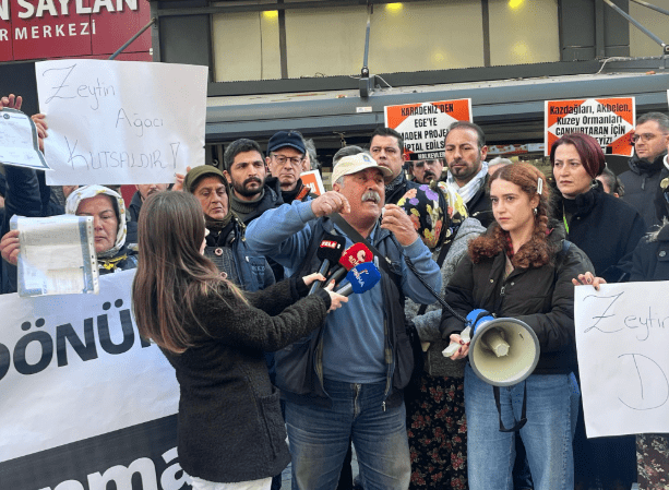İzmir Kent Konseyi Başkanı Özgür Topaç, "Bugün burada sadece ağaçlarımız değil, emeğimizi, geleceğimizi, çocuklarımızın yarınını savunmak için toplandık! Bu topraklar bizim, bu ağaçlar bizim, bu bereket bizim! Yüzyıllardır İzmir’in bereketini taşıyan zeytin ve incir bahçelerini yok edecek bir projeye asla sessiz kalmayacağız!