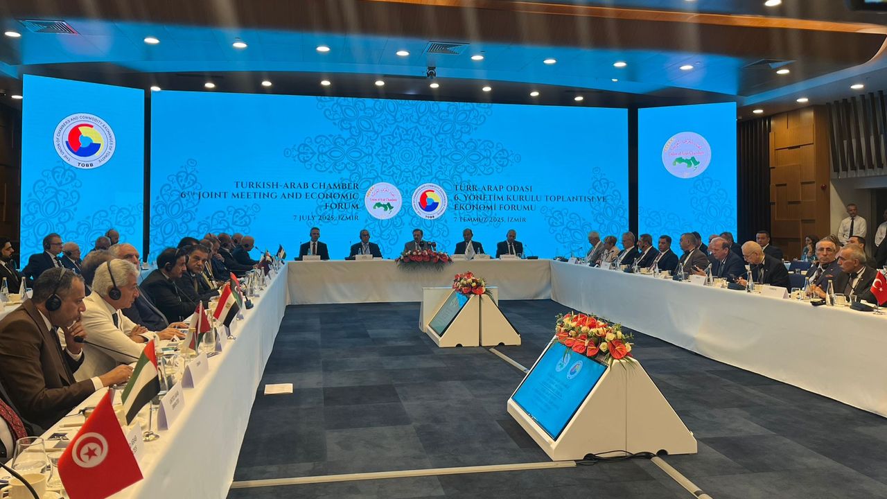Son Mühür/Gamze Eskiköy- Türkiye Odalar ve Borsalar Birliği (TOBB) ile Arap Odalar Birliği’nin ortaklaşa düzenlediği Türk-Arap Odası 6. Yönetim Kurulu Toplantısı, İzmir Ticaret Odası’nda (İZTO) gerçekleştirildi. TOBB Başkanı Rıfat Hisarcıklıoğlu’nun ev sahipliğinde yapılan buluşmaya, 15 Arap ülkesinden 100’ün üzerinde iş insanı, beş büyükelçi ve Arap Odalar Birliği Başkanı Khaled Hanefi katıldı.