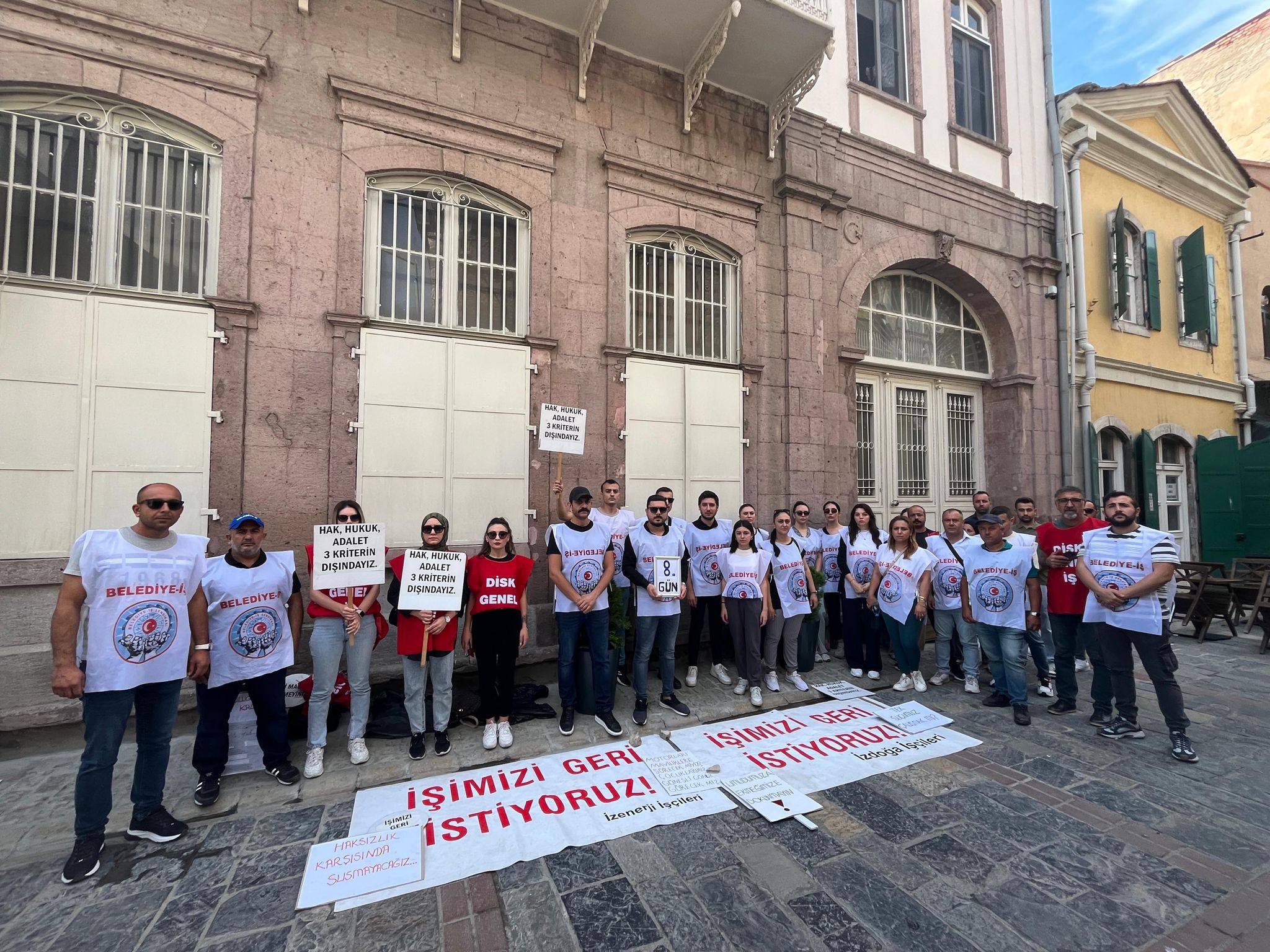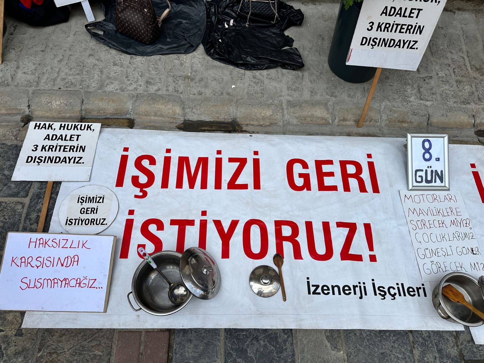 8'nci güne geride bırakan oturma eylemine artık boş tencereler ile katılacak olan işçiler,seslerini daha gür bir şekilde kamuoyuna duyurmak istiyor. Ayrıca işçiler,‘‘işimizi geri istiyoruz’’, ''direne direne ve birleşe birleşe kazanacağız''sloganları ile seslerini bir kez daha İzmir Büyükşehir Belediye Başkanı Cemil Tugay'a duyurmak istedi.İşçilerin genel talebi:Haksız yere çıkarıldıkları işlerine tekrardan geri dönebilmek.