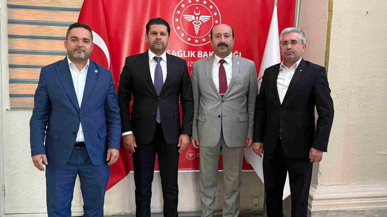 Son Mühür/Merve Turan- Sağlık-Sen İzmir 1 Nolu Şube Başkanı Gencer Yılmaz, 2 Nolu Şube Başkanı Ekrem Özdemir ve 3 Nolu Şube Başkanı Özgür Karagöz, İzmir İl Sağlık Müdürü Dr. Öğr. Üyesi M. Burak Öztop’u makamında ziyaret etti.