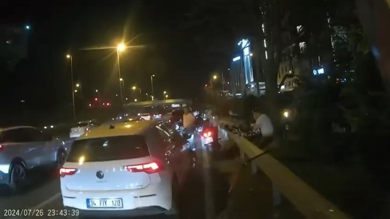 Olay, geçtiğimiz cumartesi 23.40 sıralarında Çağlayan-Haliç istikametinde E-5 karayolunda meydana geldi. 34 FIY 120 plakalı aracın sürücüsü, motosikletlilerle tartışma yaşadı. Sürücü, aracını motosikletinden inen kadının üzerine sürdü. Kadın, bir diğer kişinin kendisini bariyerlerin arkasına çekmesiyle ezilmekten kurtuldu. Kadına çarpamayan araç, motoru ezmeye çalışarak uzaklaştı. Otomobilin önünde bulunan bir başka kişi de kaçmaya çalışan araçtan son anda kaçtı.