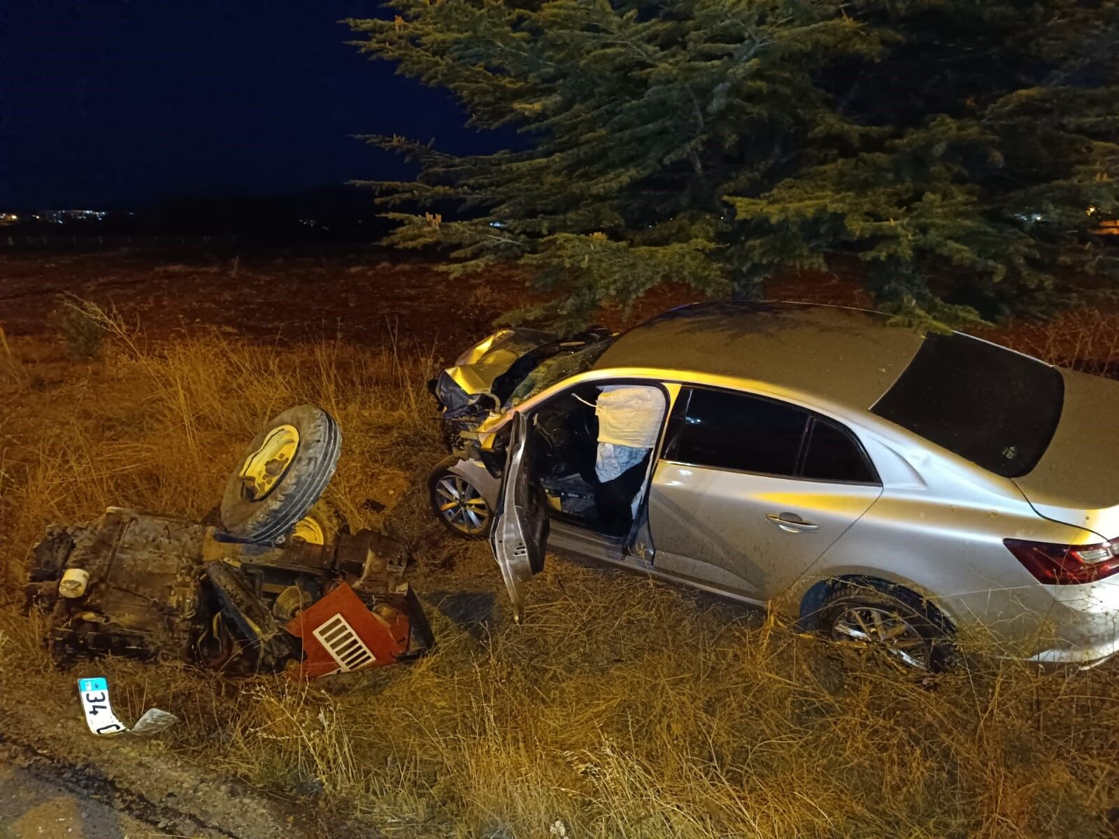 Afyonkarahisar’da traktör ve 2 otomobilin karıştığı kazada 5 kişi yaralanırken, olayda otomobillerle çarpışan traktör ortadan ikiye bölündü.