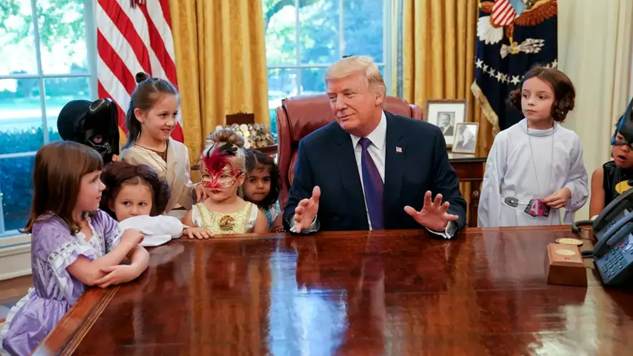 Kısa sürede yüz binlerce izlenmeye ulaşan videoda, çocuklardan birinin Trump’ın adını sorması üzerine Başkan’ın gülümseyerek “Benim adım Donald” demesi dikkat çekiyor. Görüntülerde ayrıca Trump’ın, gazeteci Salena Zito’nun torunlarına hatıra paraları ve kalemler hediye ettiği de görülüyor.