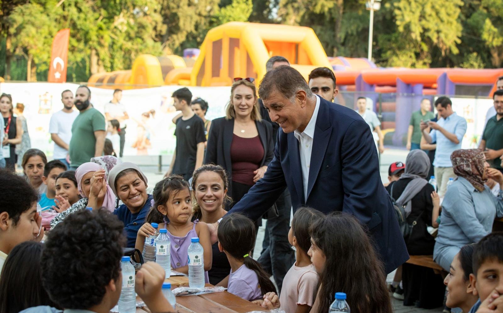 Son Mühür / Merve Turan - İzmir Büyükşehir Belediye Başkanı Dr. Cemil Tugay, 94. İzmir Enternasyonal Fuarı (İEF) kapsamında, kent genelindeki Dayanışma Noktaları’ndan hizmet alan çocuklar ve aileleriyle bir araya geldi. Bayraklı’dan fuara katılan 46 çocuk ve 17 yetişkin, Kültürpark’taki yemek alanında Başkan Tugay ile birlikte yemek yedi ve sohbet etme fırsatı buldu.