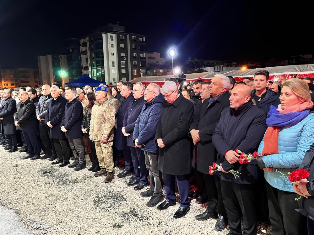 Başkan Tunç Soyer, İzmir Büyükşehir Belediyesinin genel koordinasyonunu üstlendiği Osmaniye'de hayatını kaybedenler için düzenlenen anma törenlerine katıldı. CHP milletvekilleri ve partililerle beraber ilk olarak Metin Tamer Sitesi bölgesinde düzenlenen törene katılan Başkan Tunç Soyer, burada hayatını kaybedenler anısına enkazın yerine karanfil bıraktı. Hemen sonrasında ise İstasyon Caddesinde gerçekleşen anma törenine katılan Başkan Soyer, depremzedelerle bir araya geldi.
