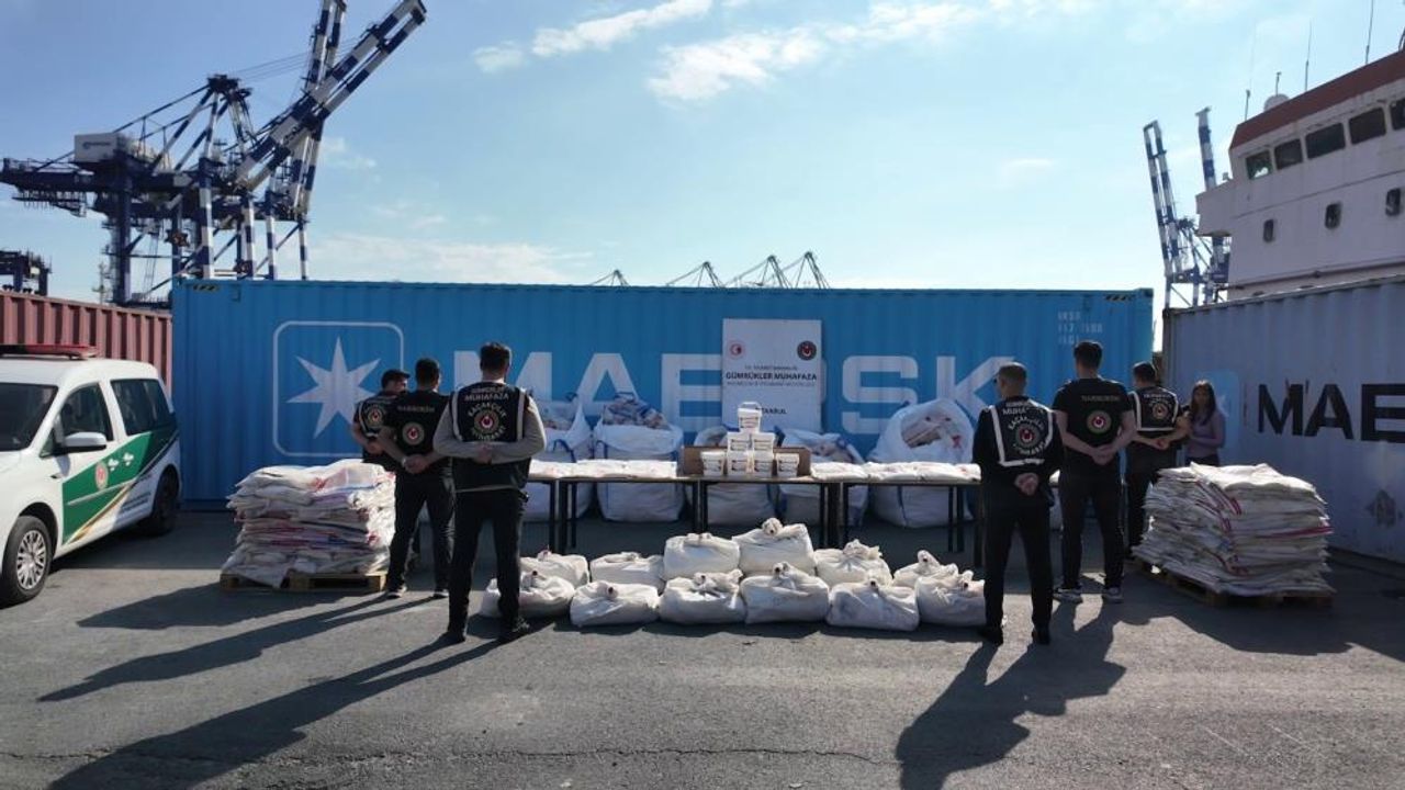 Ele geçirilen 1,7 ton yasaklı madde ve 105 kilo yasaklı madde, Ambarlı Limanı’nda düzenlenen etkinlikte basın mensuplarına gösterildi.