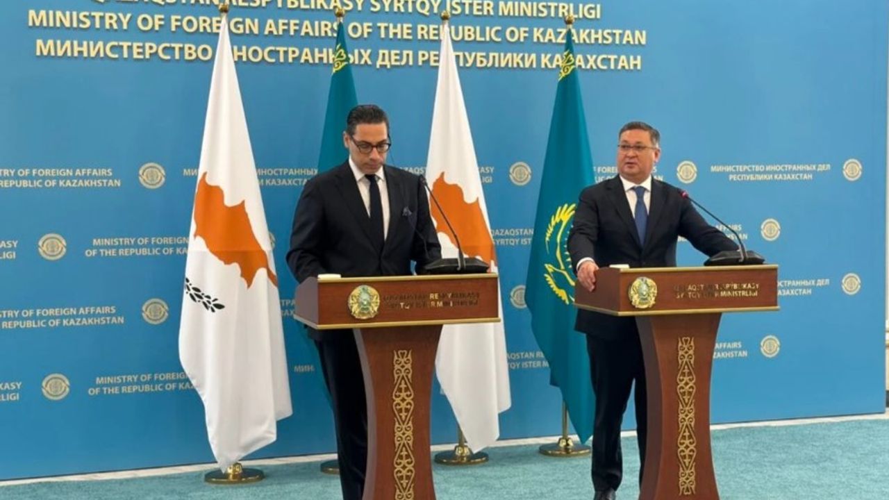 ''Kazakistan Dışişleri Bakanı Murat Nurtileu, Güney Kıbrıs'a giderek Rum yönetimi başkanı ile görüştü.