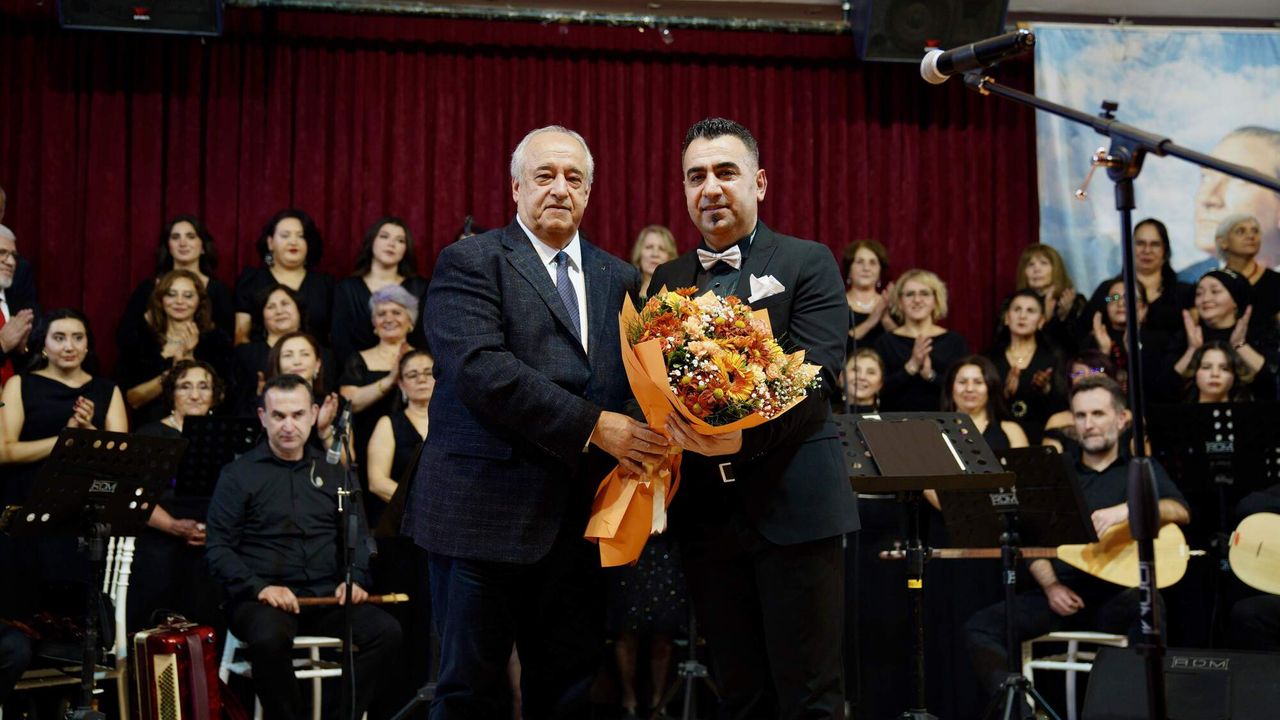 Konser sırasında sahneye davet edilen Aliağa Belediye Başkan Yardımcısı Mesut Öztürk, Şef Ali Hikmet Gökçen’e teşekkür çiçeği sundu. Öztürk, konuşmasında koristlere, saz sanatçılarına, Şef Gökçen’e ve geceye katılan tüm sanatseverlere teşekkür etti.