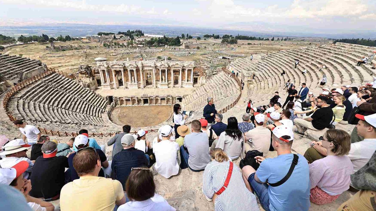 Son Mühür/ Seçil Ünlü- Gezi programı sabah saatlerinde UNESCO Dünya Mirası Listesi'nde yer alan Pamukkale travertenleri ve antik Hierapolis kenti ile başladı.