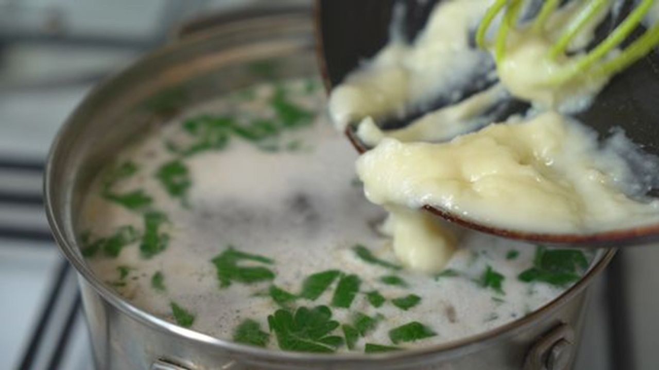 - Tel veya çırpıcı ile ezmeyi çorbanın içine karıştırın.