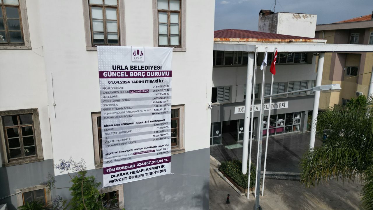 Urla Belediye Başkanı Yüksek Mimar Selçuk Balkan, 31 Mart Yerel Seçimleri sürecinde göreve geldikten sonra verdiği vaatlerinden biri olarak belediyenin beyaz duvarına borçlarının yer alacağı mali tabloyu asacaklarını belirtmişti. Asılan pankartta Belediyenin toplamda 224 milyon 957 bin 331 TL borcunun olduğu Belediyenin mevcut kayıtlarından alınarak kamuoyuna bildirildi.