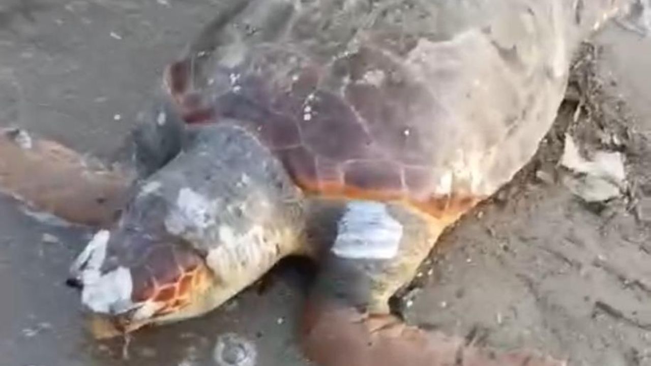 İzmir’in Urla ilçesinde, İçmeler sahilinde yürüyüş yapan vatandaşlar, sahilde kumlar üzerinde hareketsiz bir şekilde bulunan caretta caretta deniz kaplumbağasını fark etti. Yapılan incelemelerde, kaplumbağanın telef olduğu ve üzerinde ağ parçaları bulunduğu tespit edildi. Olay anını cep telefonuyla kaydeden vatandaşlar, "Sanırım ağlara takılmış, üstünde ağ parçaları var. Yazık, günah. Sabah ölmüş galiba" şeklinde yorum yaptı.