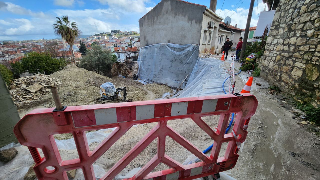 İzmir’in Urla ilçesinde, Sıra Mahallesi Soğanlı Sokak’ta devam eden bir inşaat çalışması, alınmayan önlemler nedeniyle çevredeki yapı ve yolları tehlikeye attı. Temel kazısının başlatıldığı alana bitişik taşınmazlarda derin çatlaklar oluşurken, sokaktaki yol da büyük bir gürültüyle çöktü.
