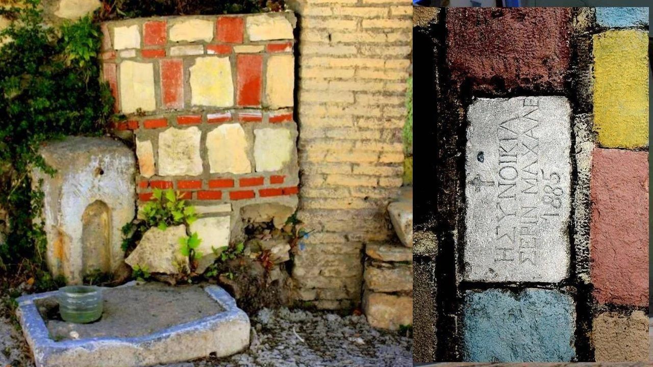 Çeşmenin ön cephesinde yer alan beyaz mermer taş üzerindeki Yunanca yazıt, yapının tarihine ışık tutuyor. “HΣΥΝΟΙΚΙΑΙ ΣΕΡΙΝ ΜΑΧΑΛΕ 1885.” ifadesi, Türkçeye “İsinikea Serin Mahalle 1885” olarak çevriliyor. Aynı cephede bulunan ve kırmızıya boyanmış başka bir taşta yer alan haç motifi ise bölgenin çok kültürlü yapısına işaret ediyor.