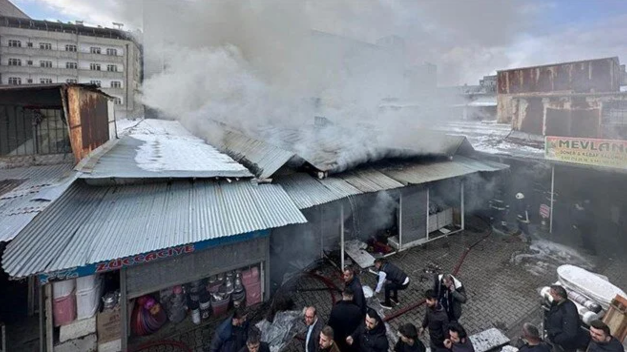 Van'ın İpekyolu ilçesindeki Büyük Rus Pazarı Çarşısı'nda henüz belirlenemeyen nedenle yangın çıktı.