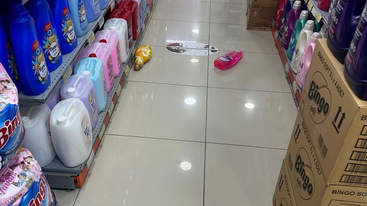 Van’ın Tuşba ilçesinde gerçekleşen 5,2 büyüklüğündeki deprem anı bir marketin güvenlik kamerasına yansıdı. Görüntülerde vatandaşların panik hali gözler önüne serildi.
