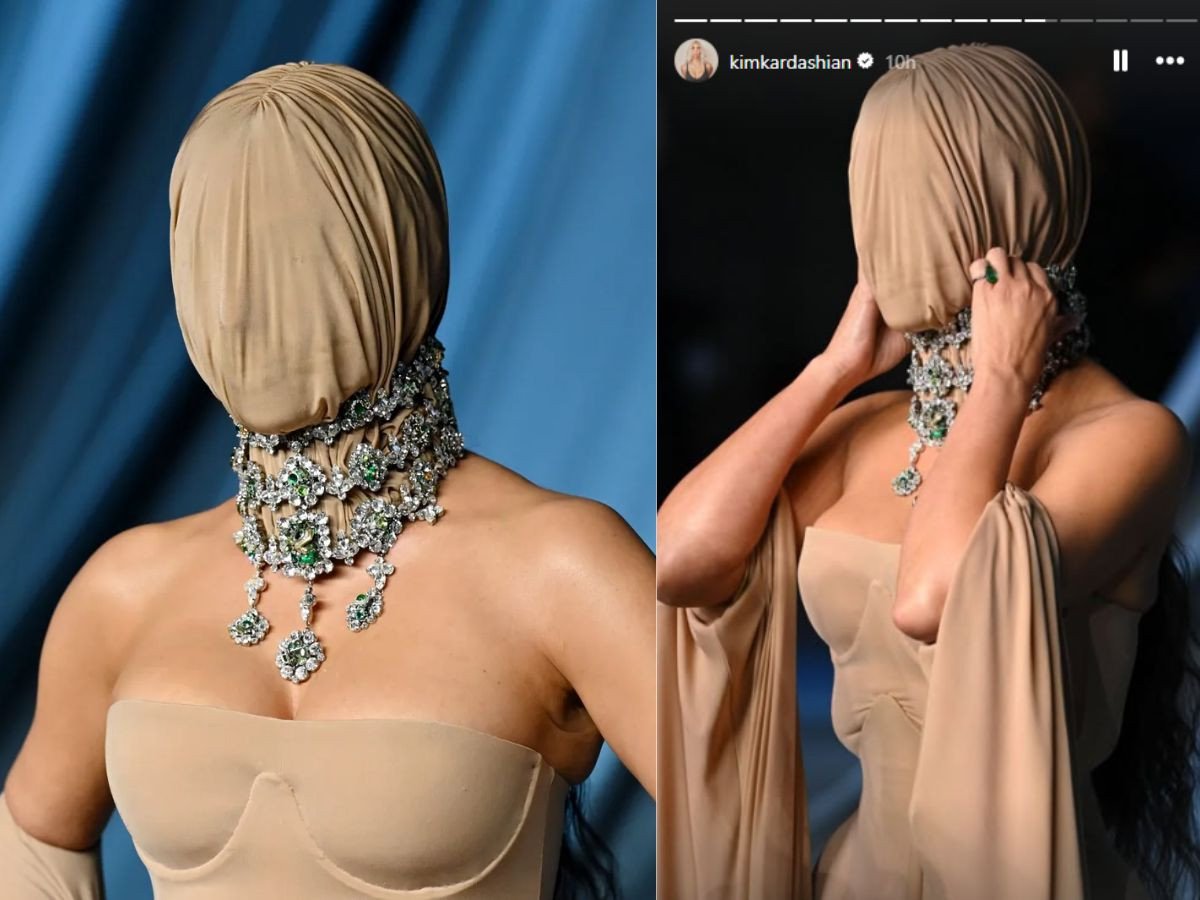 Kardashian, Maison Margiela imzalı dar korseli elbisesiyle kırmızı halıya çıktı. Elbisenin eteğine bağlı uzun kumaş parçaları, kollarını kaldırdığında yarasa kanadı efekti yarattı. Ünlü isim, iddialı tarzını pırlanta gerdanlık, zümrüt yüzükler ve pençe biçimli uzun tırnaklarla tamamladı.