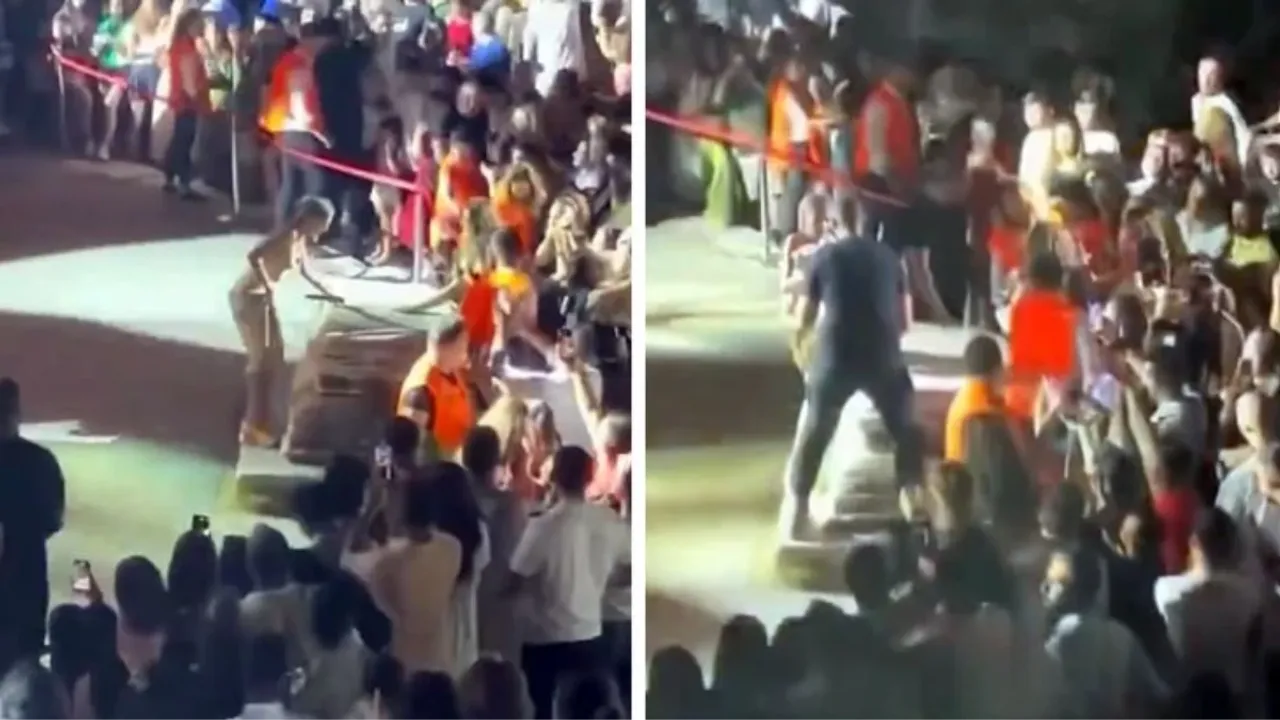 Ünlü şarkıcı Yıldız Tilbe, tarzı ve açıklamalarıyla sıkça gündeme gelen bir isim olarak Bodrum Antik Tiyatro'da hayranlarıyla buluştu. Ancak antik mezarın üzerine çıkmaya çalıştığı sırada güvenlik görevlileri tarafından engellendi.
