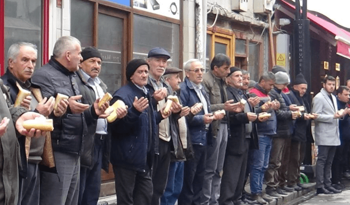 Tarihi geleneğe göre, ayakta çalışan esnaf oturarak, oturarak çalışanlar ise ayakta dua ediyor. Yediden yetmişe herkesin katıldığı bu manevi ritüelin ardından hayırseverler tarafından lokum, hayır ekmeği ve pilav ikram edilerek paylaşım ruhu yaşatıldı.