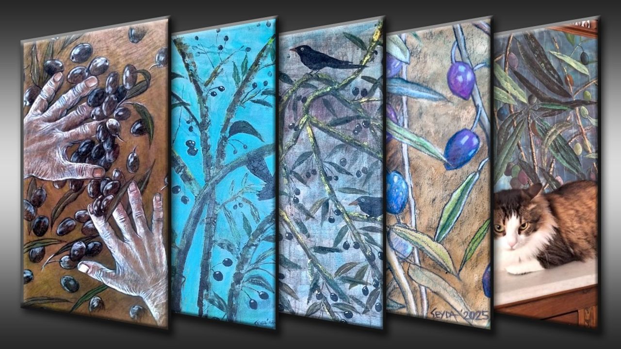 Ressam Şeyda Gürsoy Çoban, zeytin ağaçlarının karşılaştığı tehditlere karşı sanatıyla bir duruş sergilediğini vurgulayarak, “Akkuyu’da nükleer santral sürecinde zeytinliklere göz dikildiğinde eşimle bir zeytinlik satın aldık. Yok edilen zeytinlikler karşısında resim serime başladım. Bu, hem kişisel bir direnişin başlangıcı hem de sanat yolculuğumda yeni bir dönemeç oldu. Resimlerimde zeytin, hem geçmişin hem de geleceğin tanığı” dedi.